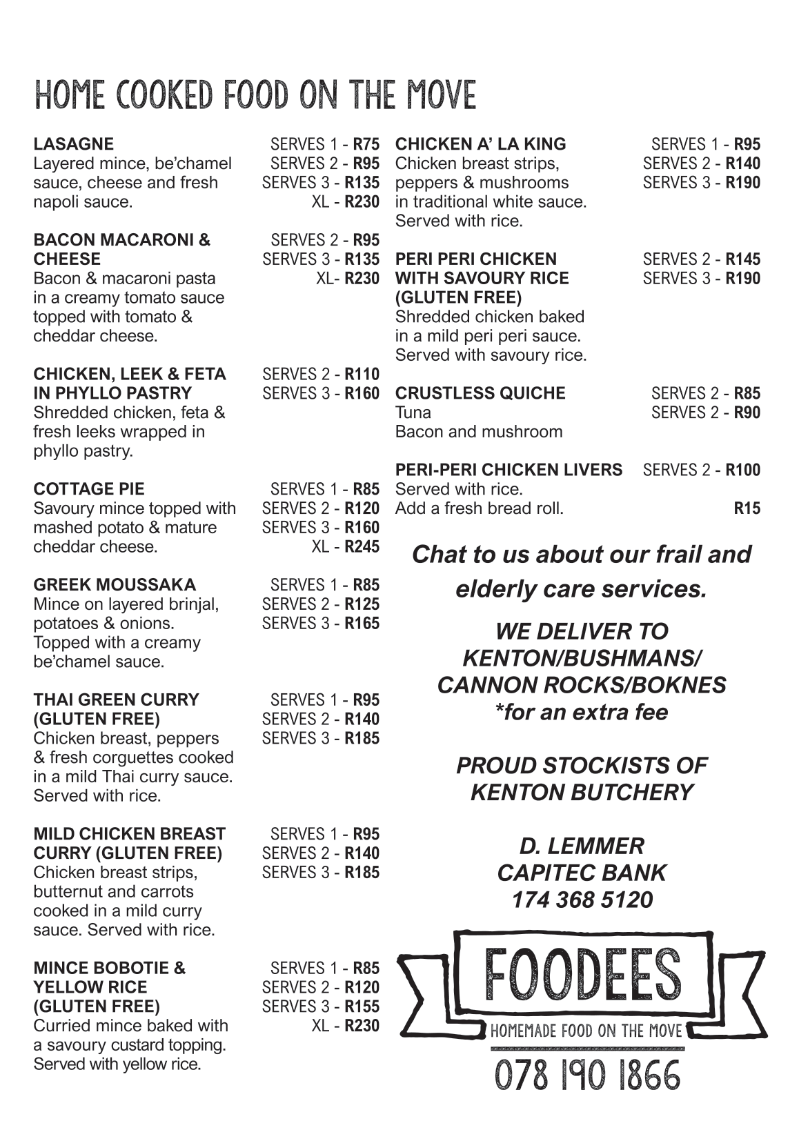 Home Prepared Meals Foodees Prepared Meals Foodees Submit a Review No reviews yet! Full Name * Email * Review Title * Your Review * Review Submit Review Share Working Hours Monday Tuesday Wednesday Thursday Friday Saturday Sunday Off See on the Map Kenton-on-Sea Contact Info 078 190 1866